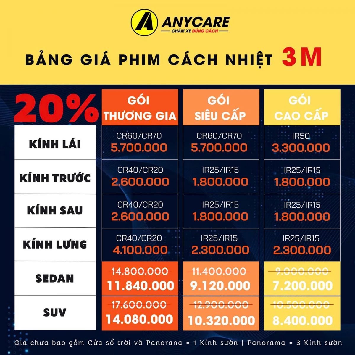 Lắp đặt phim cách nhiệt 3M chính hãng tại AnyCare Workshop